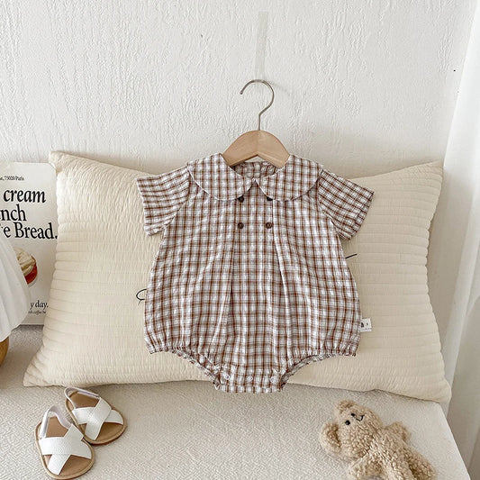 Jumpsuit+Hat Sleeveless Cotton Plaid Romper